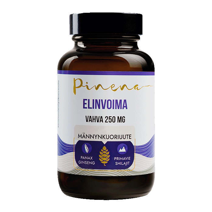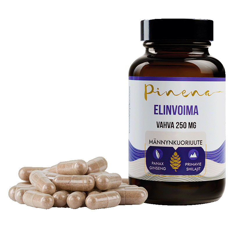 Pinena Elinvoima on seksuaaliterveyttä ja hormonitoimintaa edistävä sekä suorituskykyä ja stressinsietokykyä parantava valmiste. Se sisältää Pinena männynkuoriuutteen lisäksi Panax ginseng ja PrimaVie® Shilajit -uutetta.