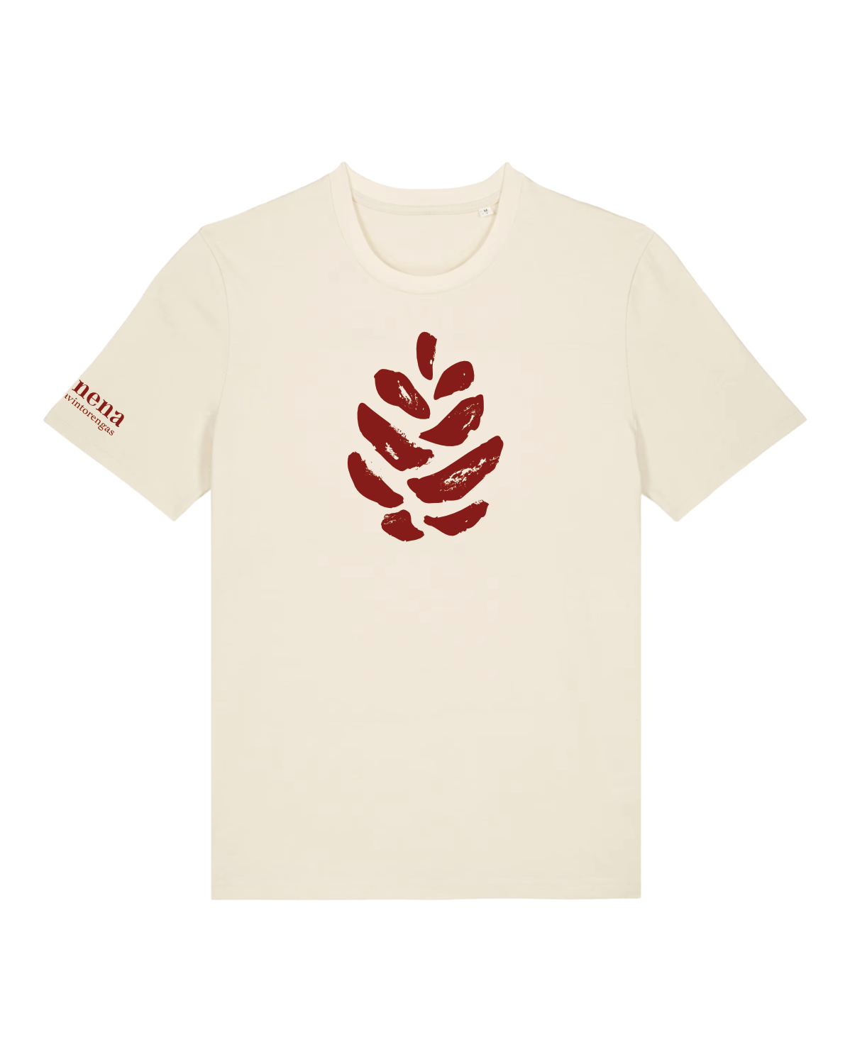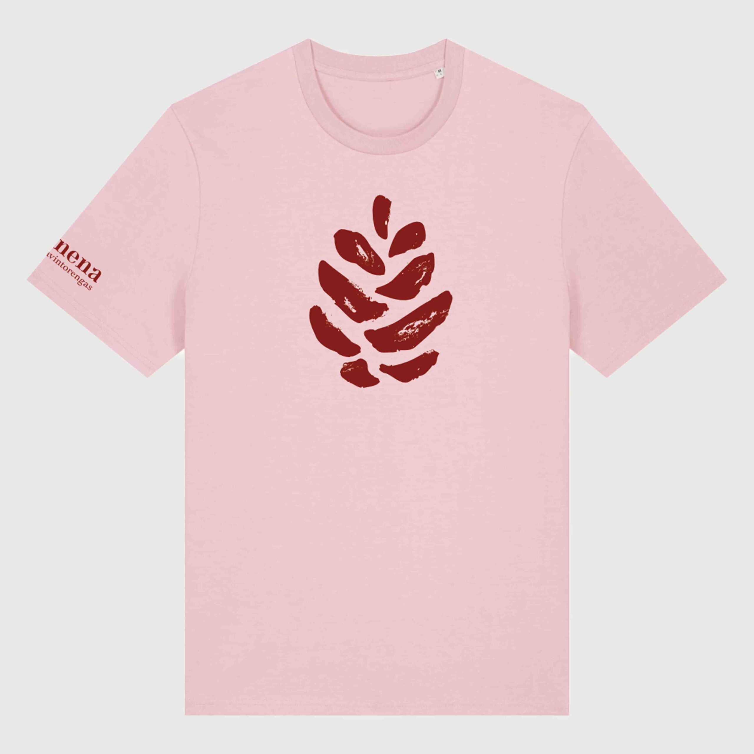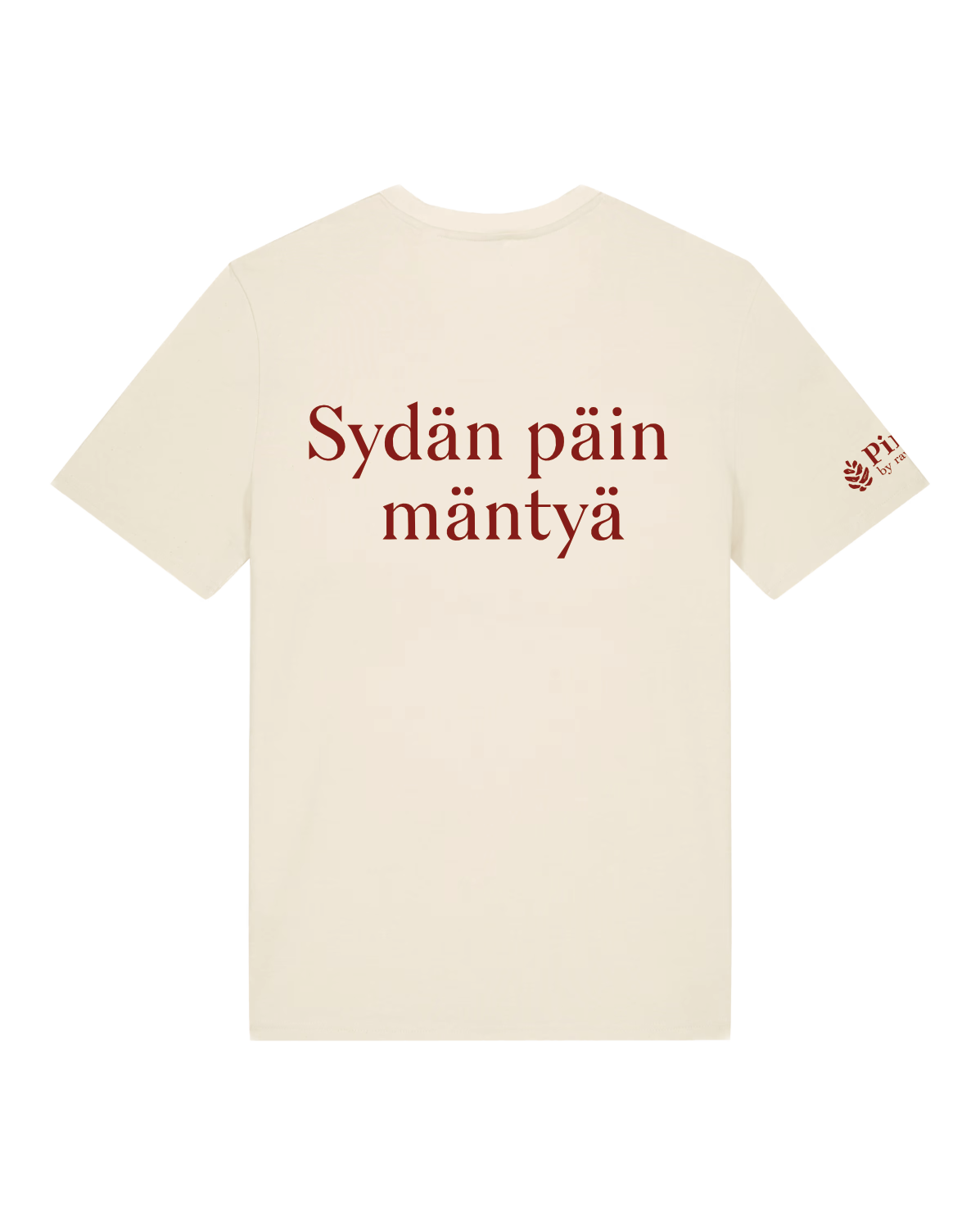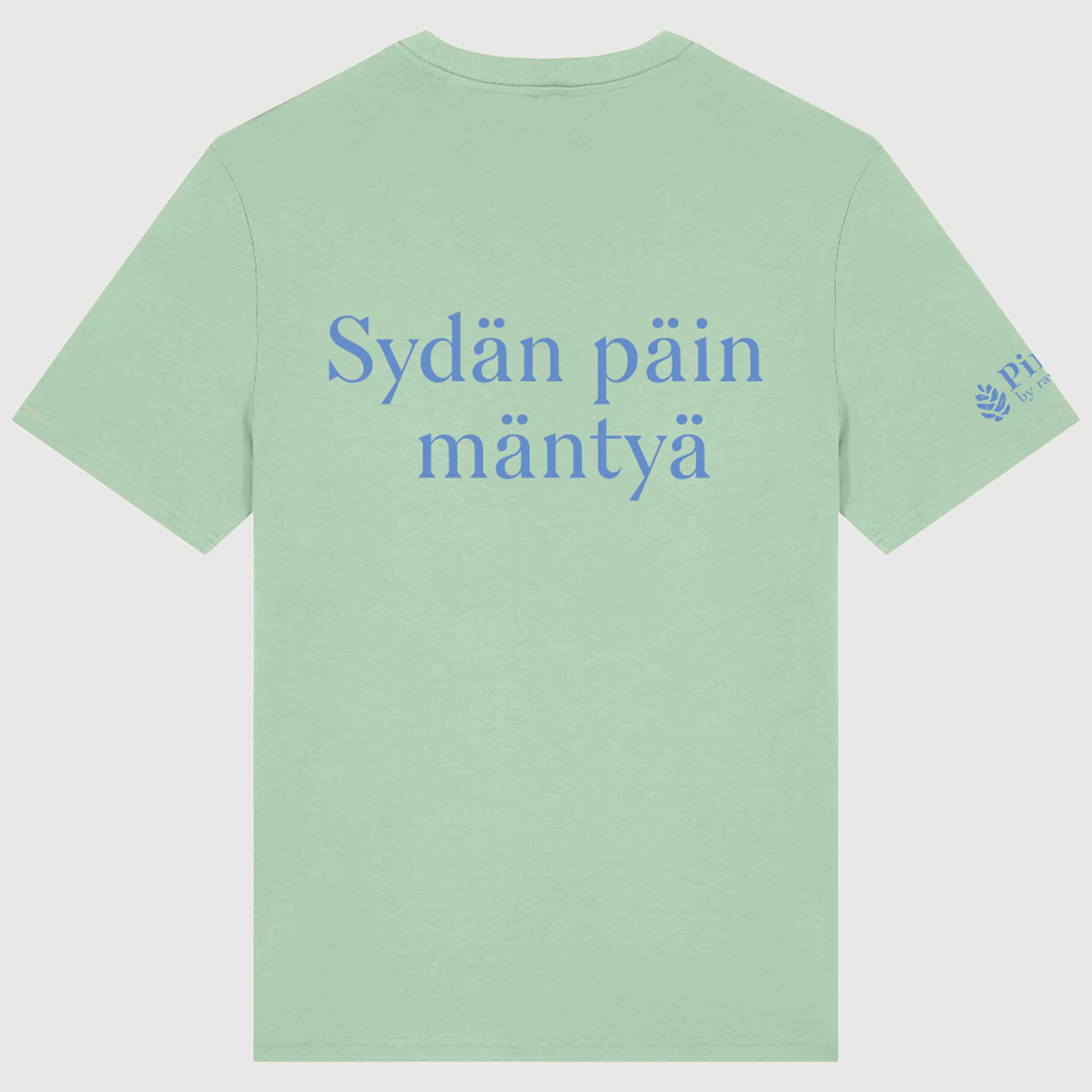 Sydän päin mäntyä! Pinena t-paita, edessä käpy, takana teksti ja hihassa Pinena-logo.